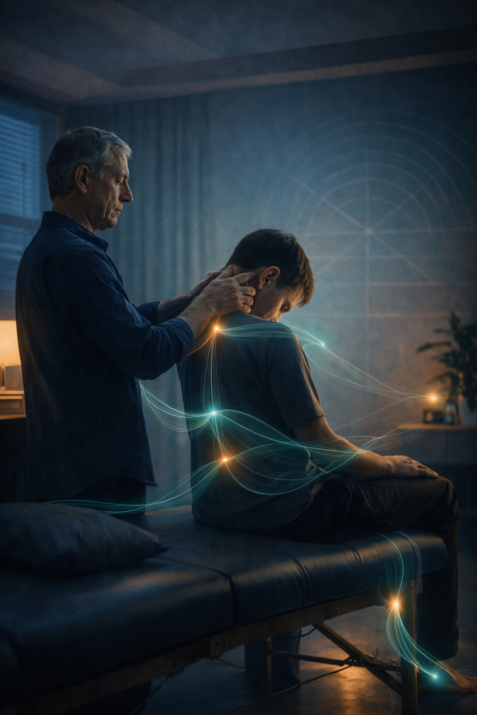 Omgekeerd voelt een patiënt ook wanneer een therapeut rustig is, aandachtig is, vertrouwen uitstraalt en oprecht luistert naar wat het lichaam aangeeft.